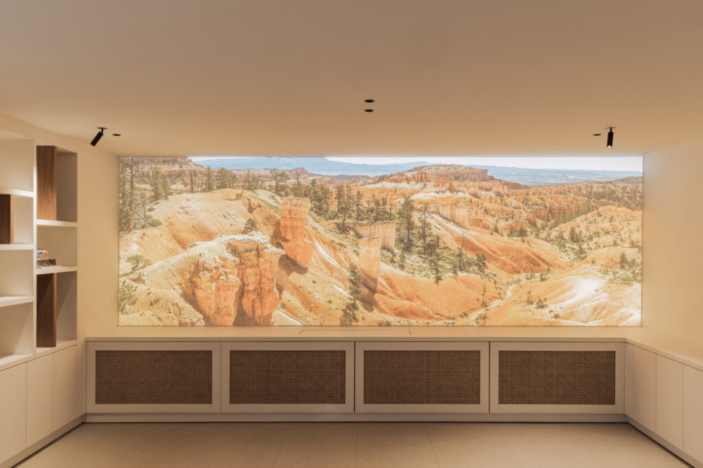 Onze hoogwaardige spanplafonds en -wanden combineren esthetiek, akoestiek, verlichting en onzichtbare technieken in één serene totaaloplossing.