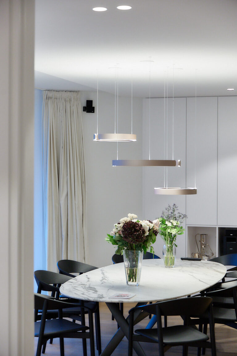 The solution was an acoustic stretch ceiling from MonaVisa. Seamlessly integrated, completely in line with the architecture, invisibly present yet audibly effective. Sound is absorbed, voices remain warm, and conversations are relaxed.